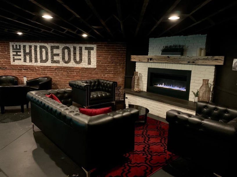 The Hideout Lounge was designed for you to be able to gather with friends and family and enjoy time together, before or after dinner. You can grab a drink from The Cellar bar and find a spot in front of the fireplace, watch the game on one of the multiple TVS or simply just be together! No reservations are needed for The Hideout, we encourage you to come in early, or hang out late, and enjoy your night at 10 West.